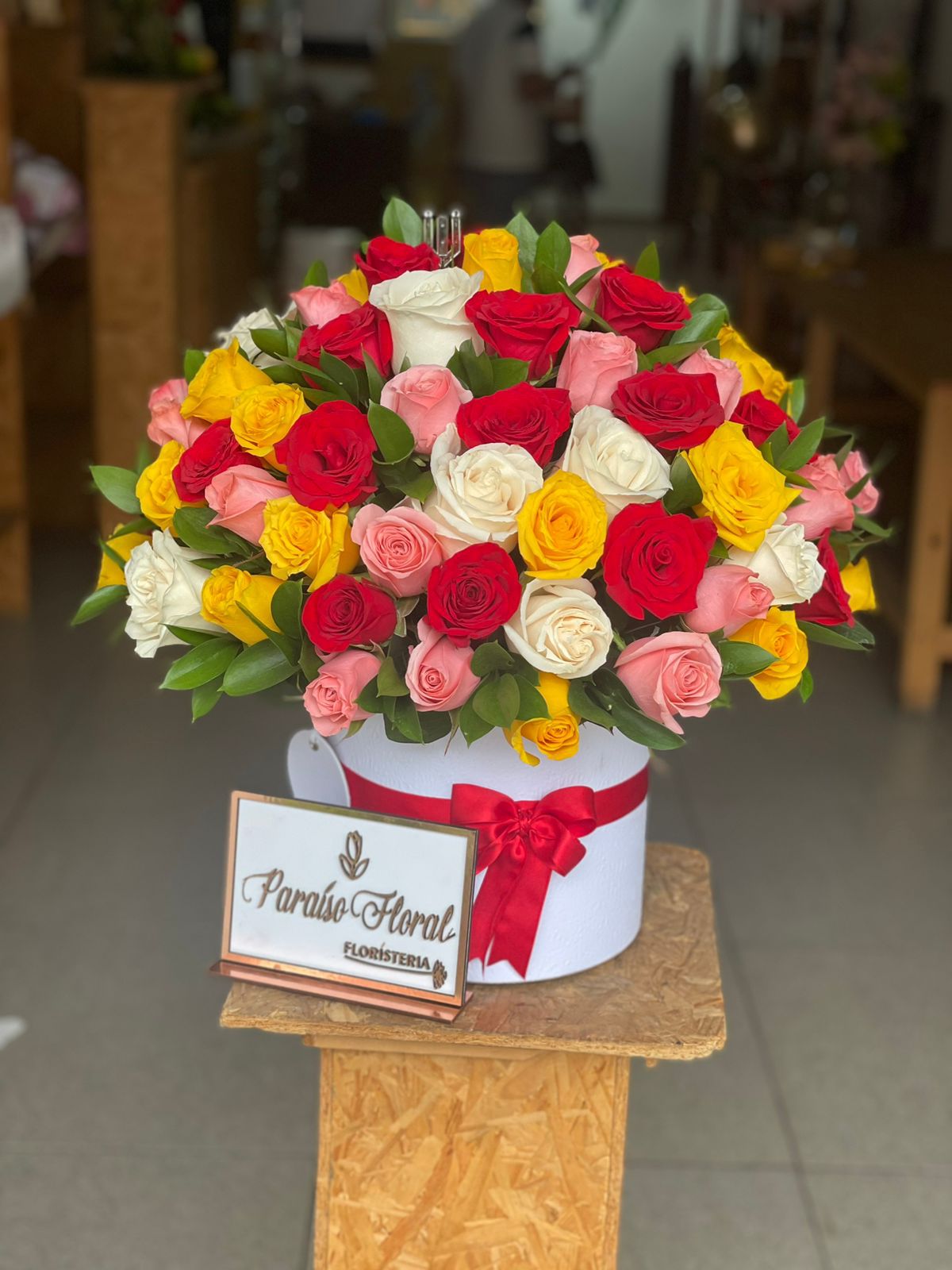 Caja redonda rosas de colores